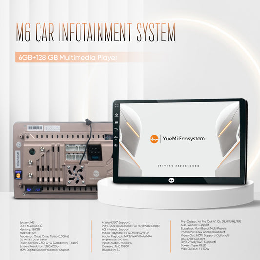 YueMi M6 6GB+128 GB Multimedia Player with 360° Birdview, Support 4G Internet & DSP (DDR 4 RAM) with C5