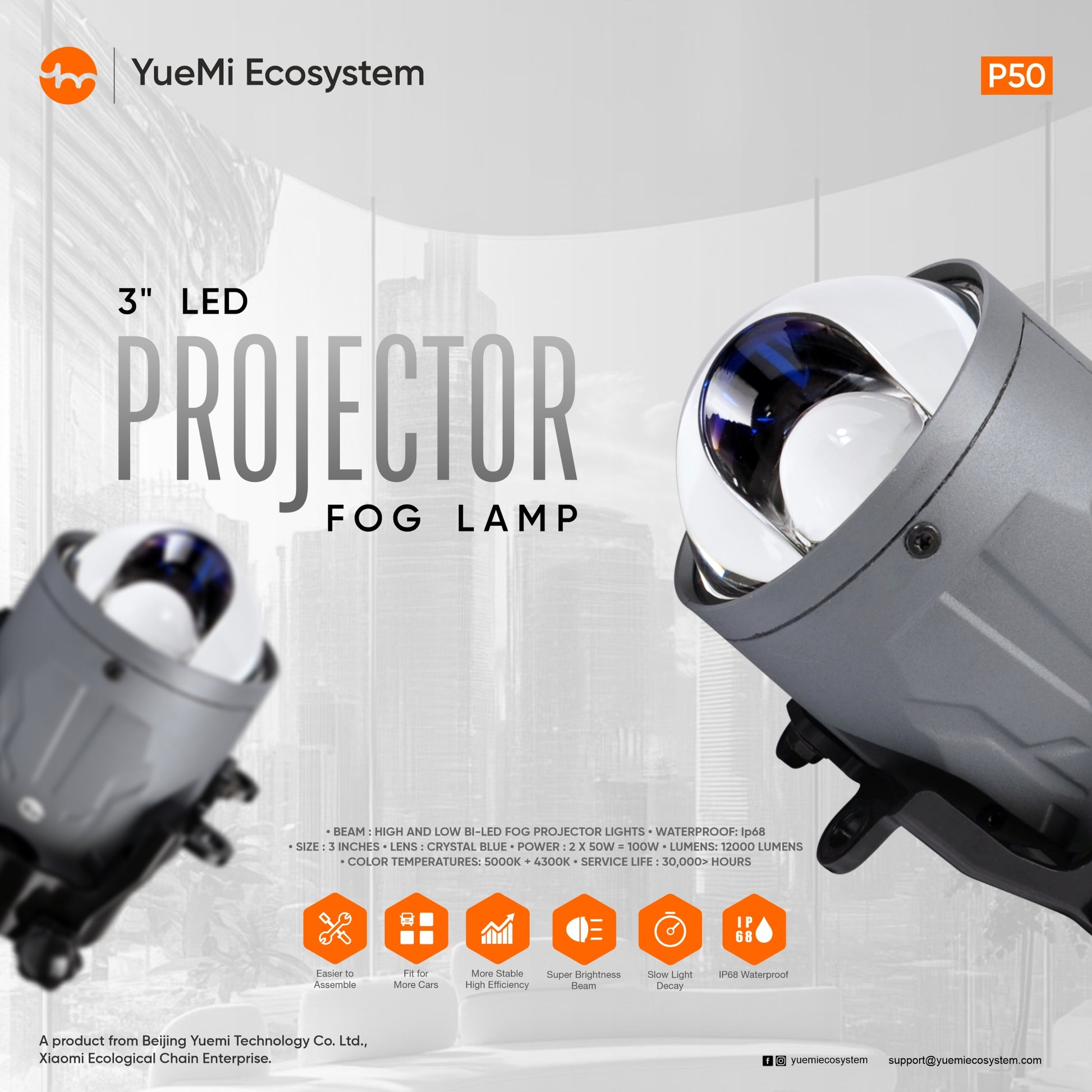 Yuemi P50 3" LED Projector Fog Lamp